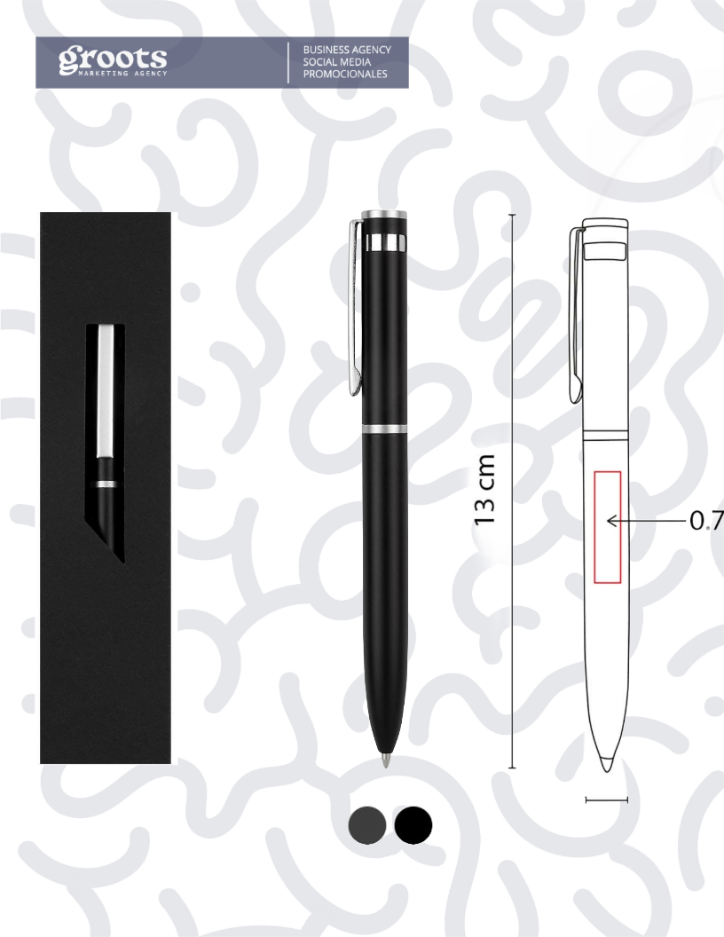 Bolígrafo metálico de acero inoxidable 1.2 X 13 cm. tinta negra técnica de impresión en laser o serigrafia