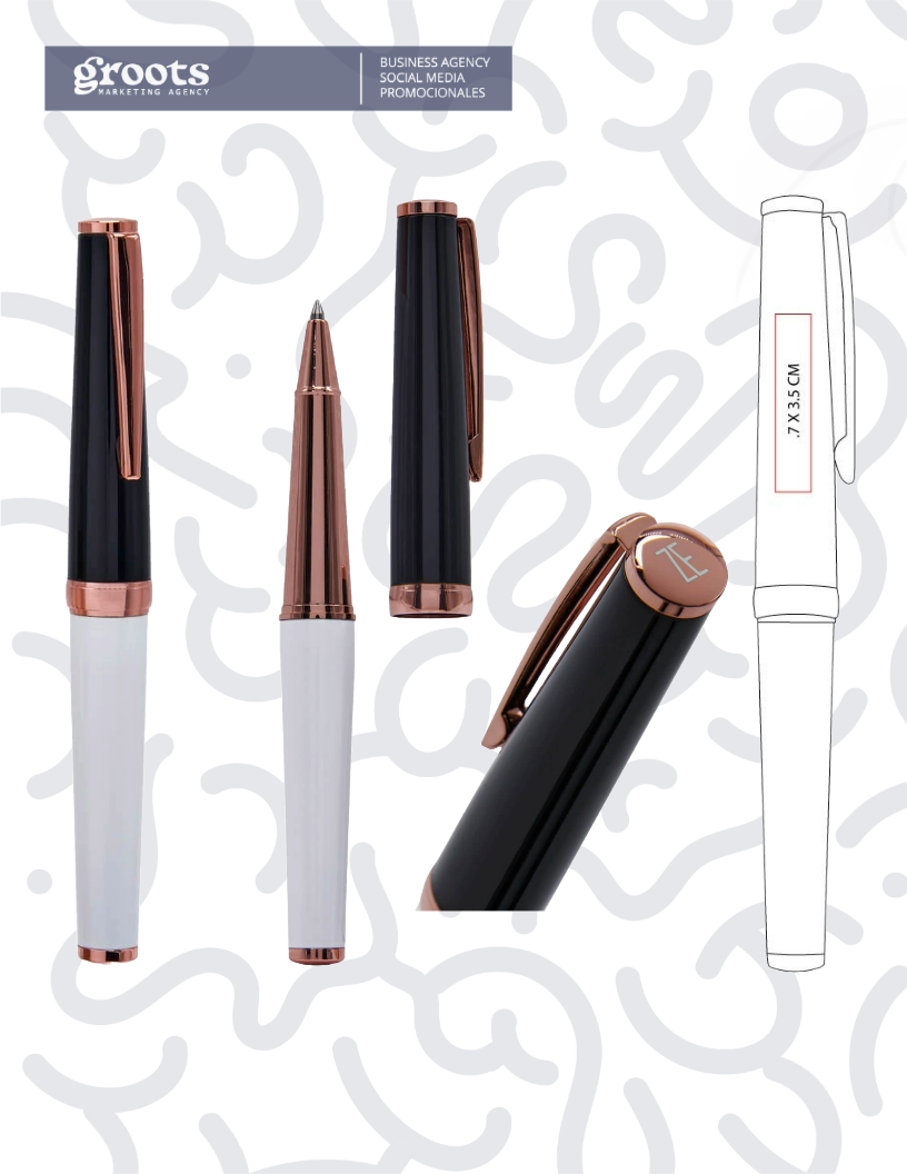 Bolígrafo de metal, 1.4 X 13.2 cm, tinta negra, incluye grabado de un logo con técnica de impresión en serigrafia o laser.