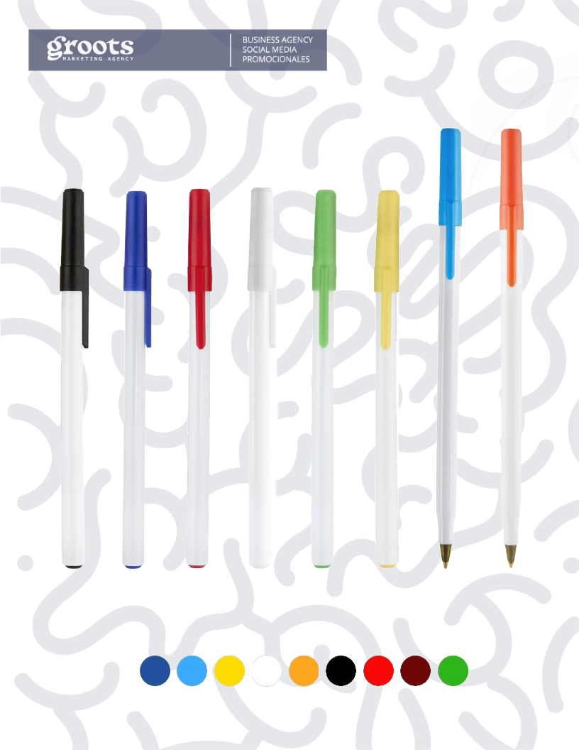 Bolígrafo plástico, 0.8 X 14.8 cm. Tinta negra incluye grabado de un logo con técnica de impresión en serigrafia.