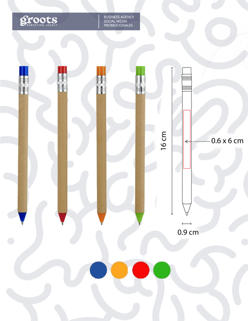 Bolígrafo ecológico, 0.9 X 14 cm. Tinta negra, incluye grabado de un logo con técnica de impresión en serigrafia.