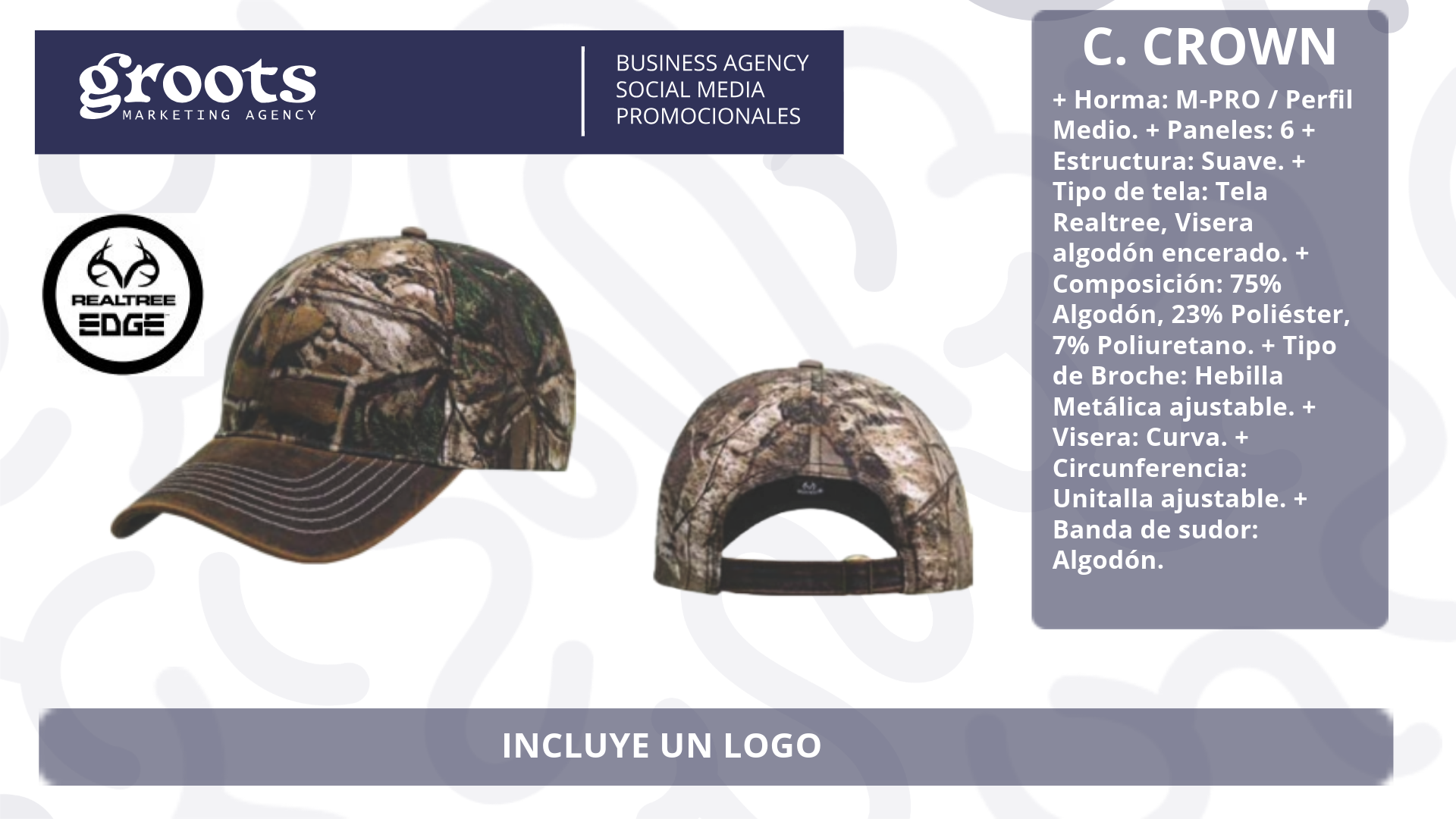 Gorra modelo C. CROWN REAL TREE Horma: M-PRO / Perfil Medio.