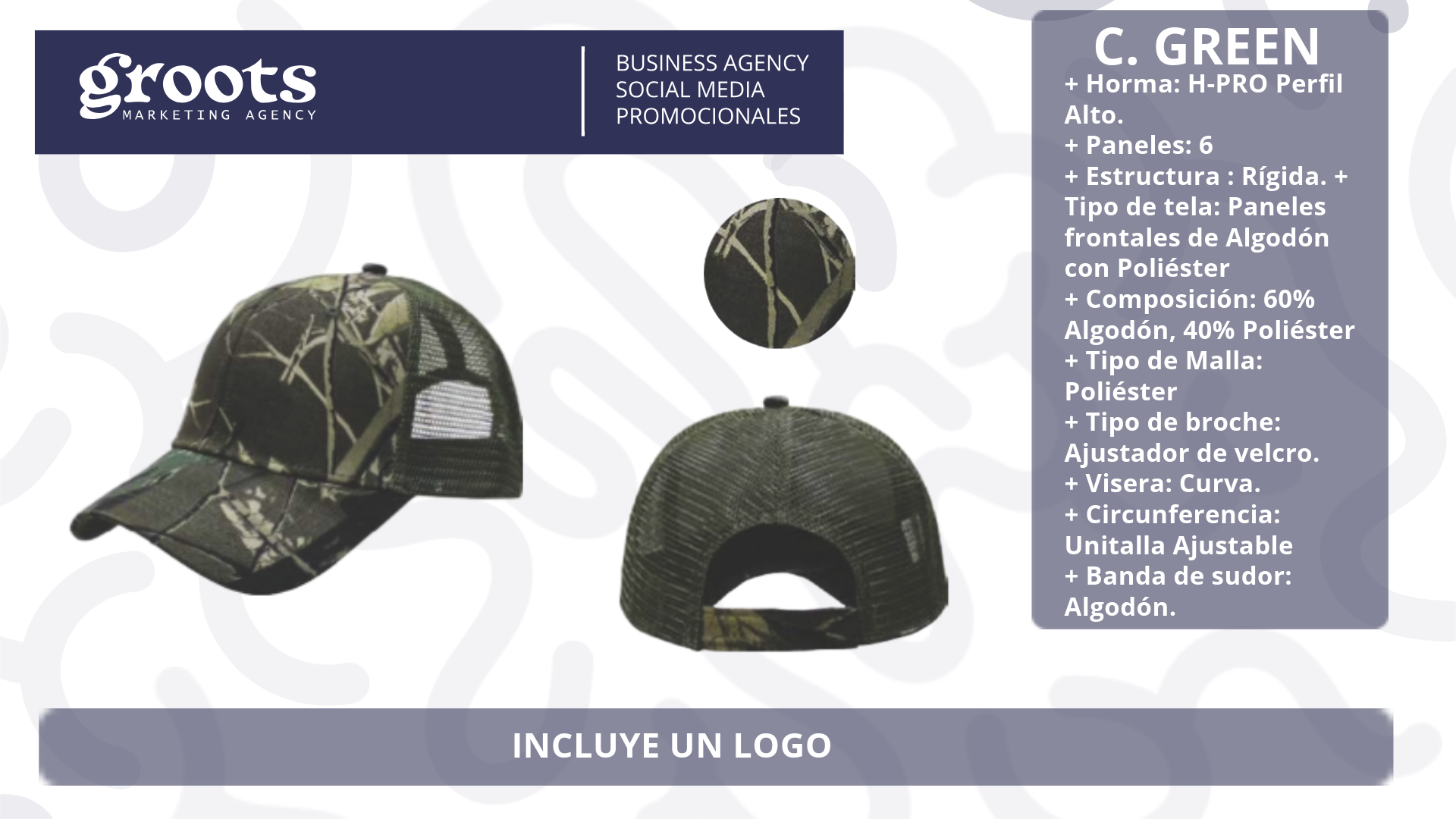 Gorra modelo C. GREEN, -Horma: H-PRO / Perfil Alto.