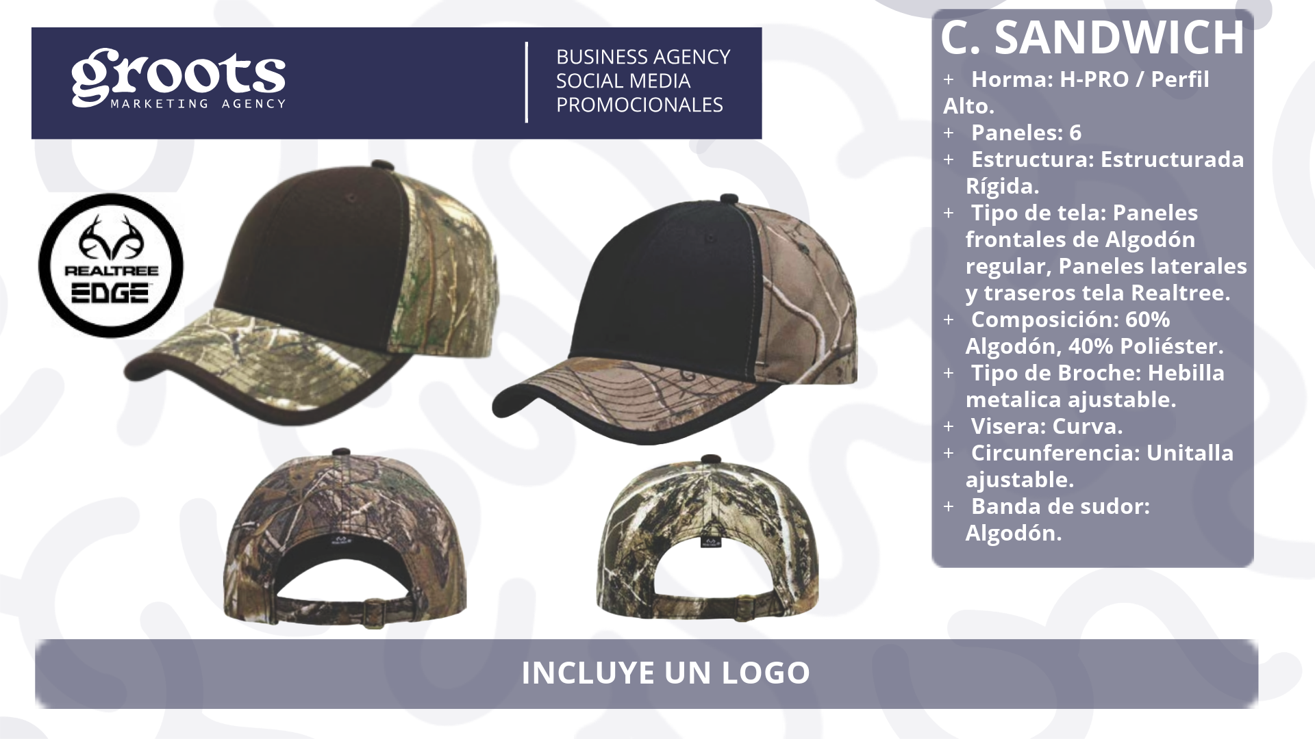 Gorra modelo C. SANDWICH REAL TREE Horma: H-PRO / Perfil Alto.
