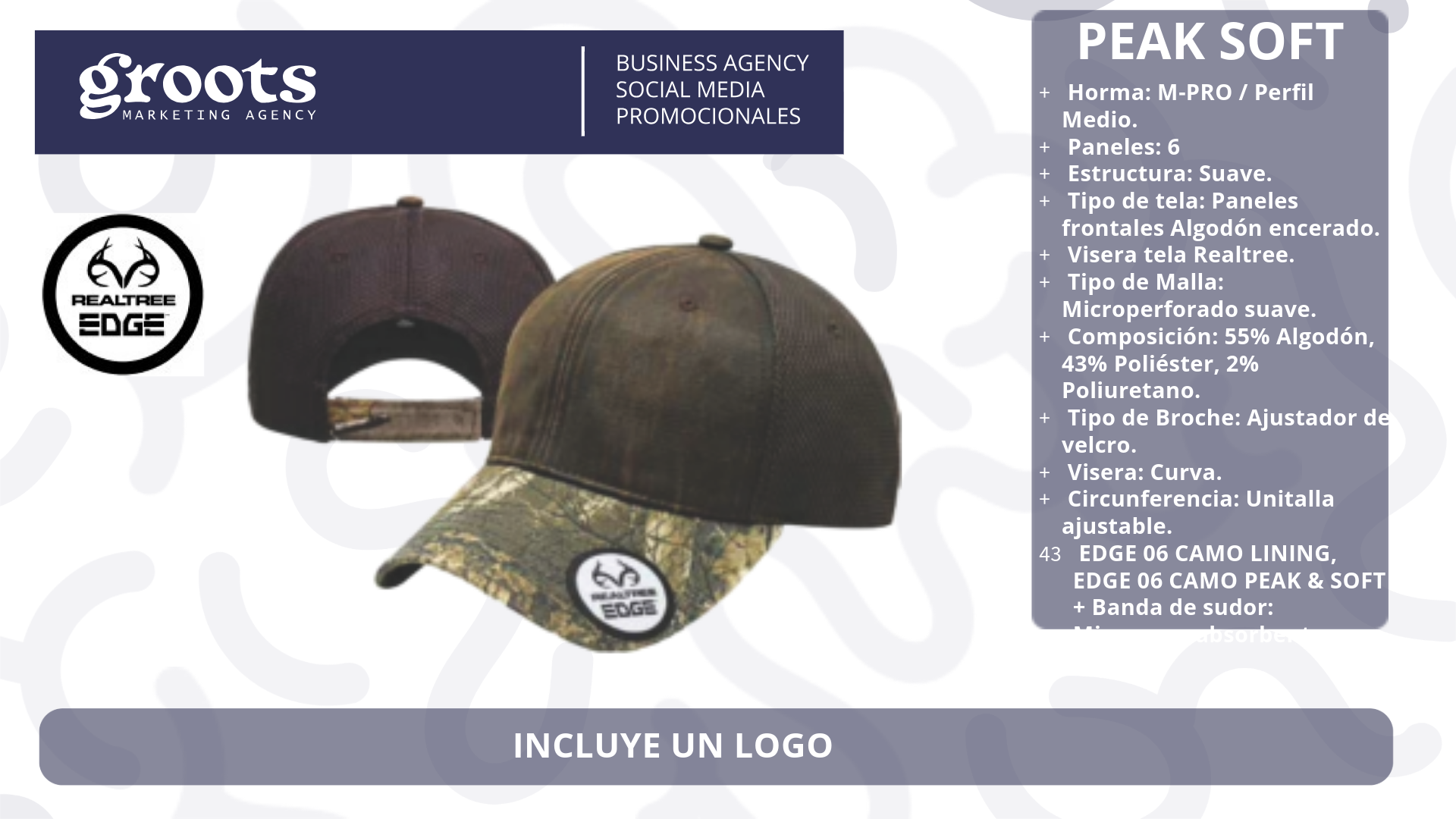 Gorra modelo PEAK SOFT REAL TREE Horma: M-PRO / Perfil Medio.