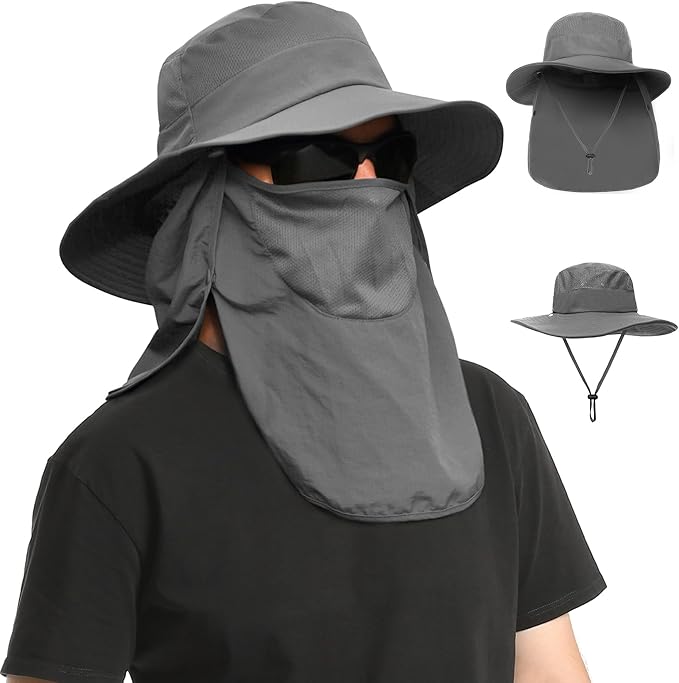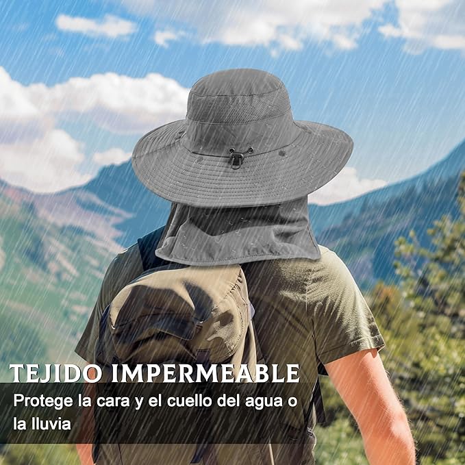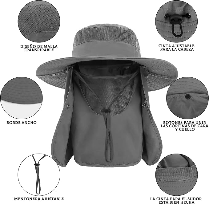 Sombrero de ala ancha con proteccion solar de cuello y cara, una impresion al frente